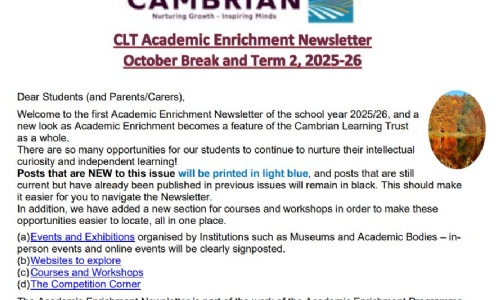 • The CLT Academic Enrichment Newsletter for the half-term and Term 2